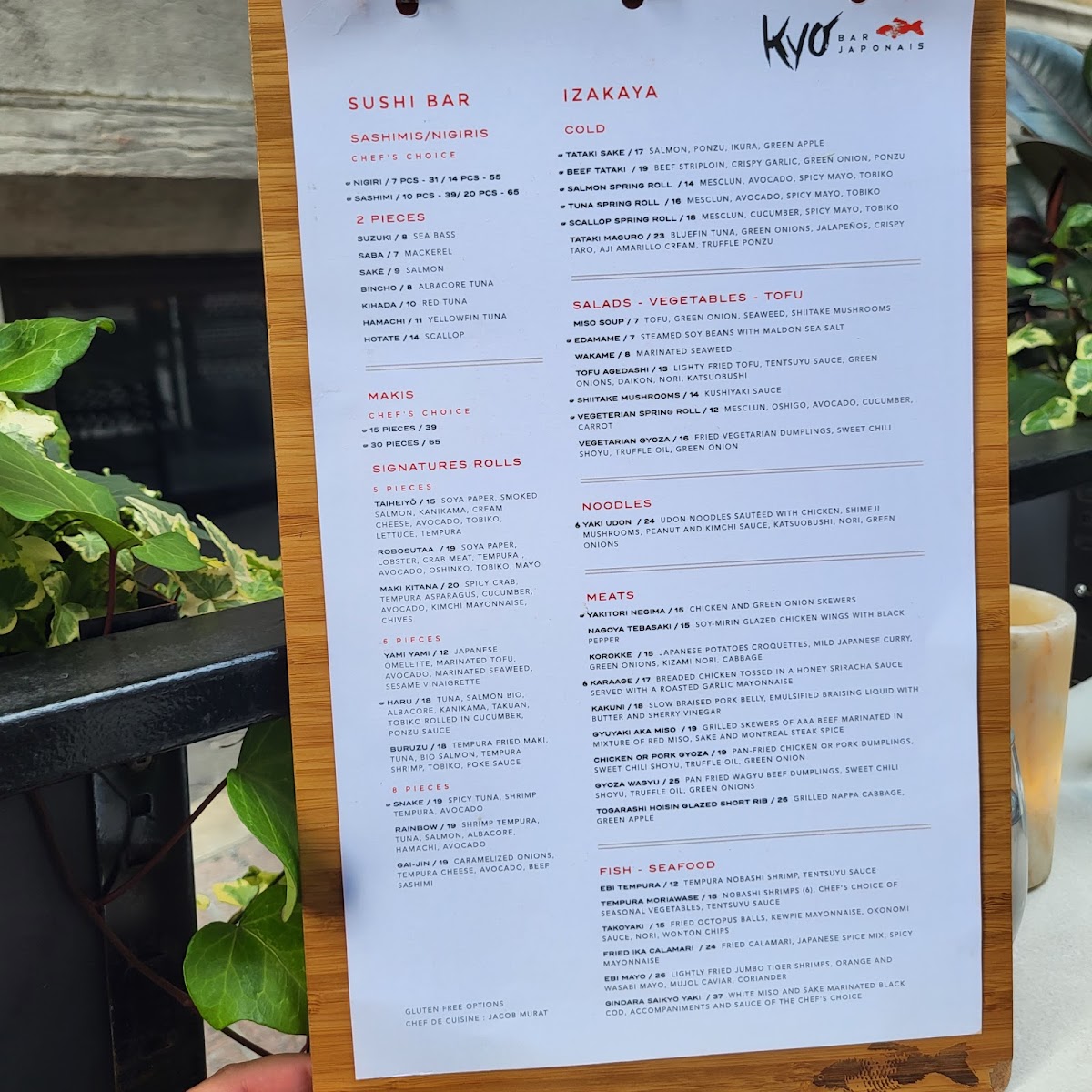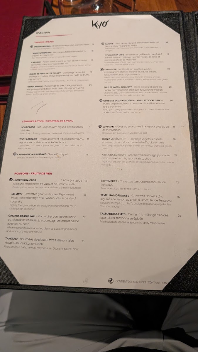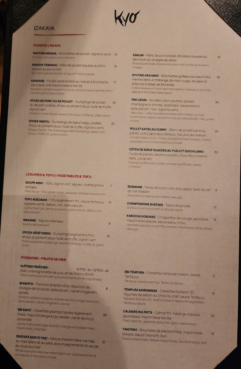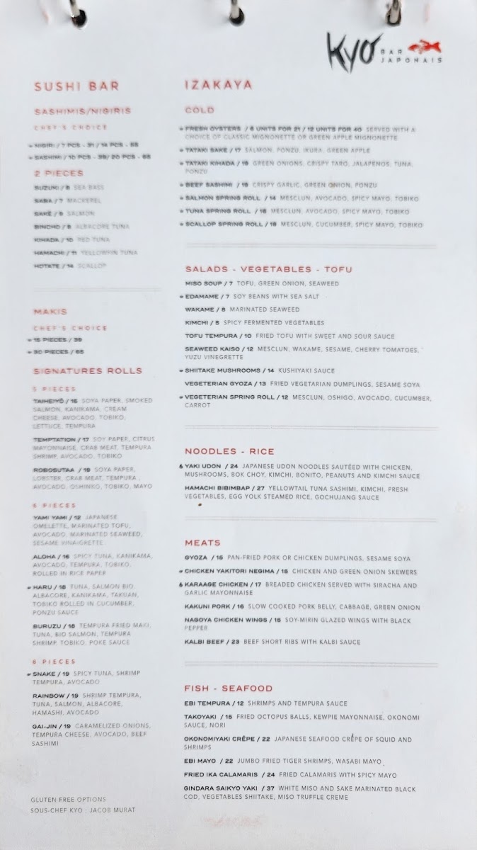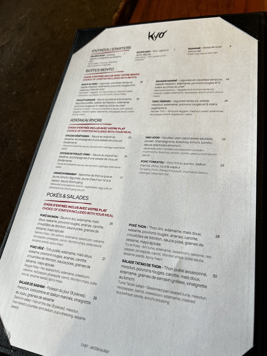 Kyo Bar Japonais Menu